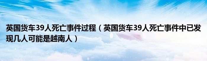 大家好,綜合小編來為大家講解下。英國貨車39人死亡事件過程,英國貨車39人死亡事件中已發現幾人可能是越南人很多人還不知道,現在讓我們一起來看看吧!