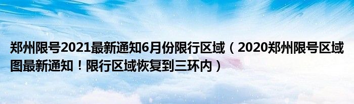 大家好,綜合小編來為大家講解下。鄭州限號2021最新通知6月份限行區域,2020鄭州限號區域圖最新通知!限行區域恢復到三環內很多人還不知道,現在讓我們一起來看看吧!