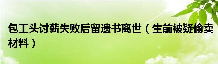 大家好,綜合小編來為大家講解下。包工頭討薪失敗后留遺書離世,生前被疑偷賣材料很多人還不知道,現(xiàn)在讓我們一起來看看吧!