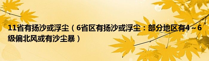 大家好,綜合小編來為大家講解下。11省有揚沙或浮塵,6省區有揚沙或浮塵:部分地區有4~6級偏北風或有沙塵暴很多人還不知道,現在讓我們一起來看看吧!