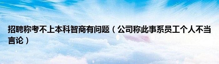 大家好,綜合小編來(lái)為大家講解下。招聘稱考不上本科智商有問(wèn)題,公司稱此事系員工個(gè)人不當(dāng)言論很多人還不知道,現(xiàn)在讓我們一起來(lái)看看吧!