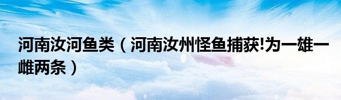 大家好,綜合小編來為大家講解下。河南汝河魚類,河南汝州怪魚捕獲!為一雄一雌兩條很多人還不知道,現(xiàn)在讓我們一起來看看吧!