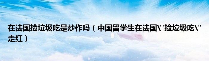 大家好,綜合小編來為大家講解下。在法國撿垃圾吃是炒作嗎,中國留學生在法國"撿垃圾吃"走紅很多人還不知道,現在讓我們一起來看看吧!