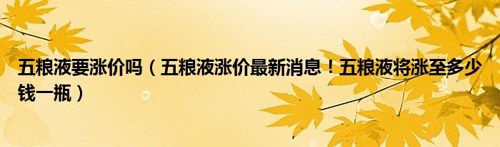 大家好,綜合小編來為大家講解下。五糧液要漲價嗎,五糧液漲價最新消息!五糧液將漲至多少錢一瓶很多人還不知道,現在讓我們一起來看看吧!