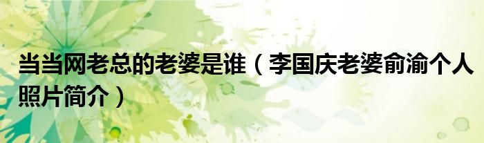 大家好,綜合小編來為大家講解下。當當網老總的老婆是誰,李國慶老婆俞渝個人照片簡介很多人還不知道,現在讓我們一起來看看吧!