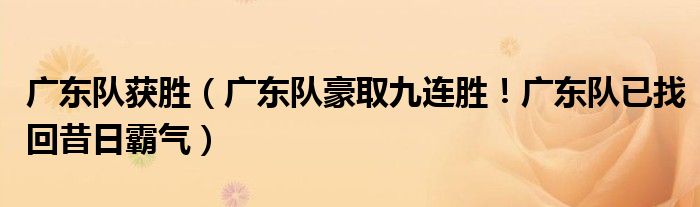 大家好,綜合小編來為大家講解下。廣東隊(duì)獲勝,廣東隊(duì)豪取九連勝!廣東隊(duì)已找回昔日霸氣很多人還不知道,現(xiàn)在讓我們一起來看看吧!