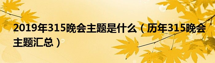 大家好,綜合小編來為大家講解下。2019年315晚會主題是什么,歷年315晚會主題匯總很多人還不知道,現在讓我們一起來看看吧!