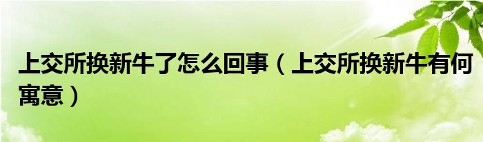 大家好,綜合小編來為大家講解下。上交所換新牛了怎么回事,上交所換新牛有何寓意很多人還不知道,現在讓我們一起來看看吧!
