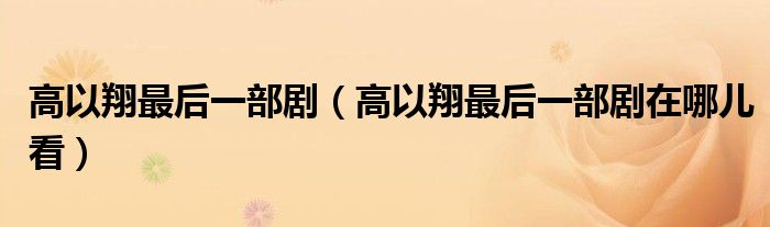 高以翔最后一部劇高以翔最后一部劇在哪兒看