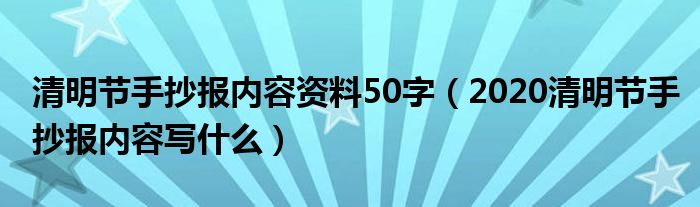 大家好,綜合小編來為大家講解下。清明節手抄報內容資料50字,2020清明節手抄報內容寫什么很多人還不知道,現在讓我們一起來看看吧!