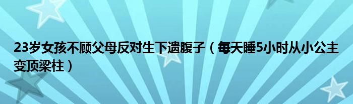 大家好,綜合小編來為大家講解下。23歲女孩不顧父母反對生下遺腹子,每天睡5小時從小公主變頂梁柱很多人還不知道,現在讓我們一起來看看吧!