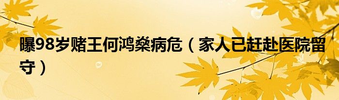 大家好,綜合小編來為大家講解下。曝98歲賭王何鴻燊病危,家人已趕赴醫院留守很多人還不知道,現在讓我們一起來看看吧!
