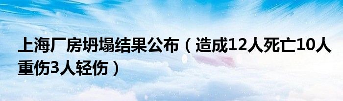 大家好,綜合小編來為大家講解下。上海廠房坍塌結(jié)果公布,造成12人死亡10人重傷3人輕傷很多人還不知道,現(xiàn)在讓我們一起來看看吧!