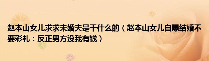 大家好,綜合小編來為大家講解下。趙本山女兒求求未婚夫是干什么的,趙本山女兒自曝結(jié)婚不要彩禮:反正男方?jīng)]我有錢很多人還不知道,現(xiàn)在讓我們一起來看看吧!