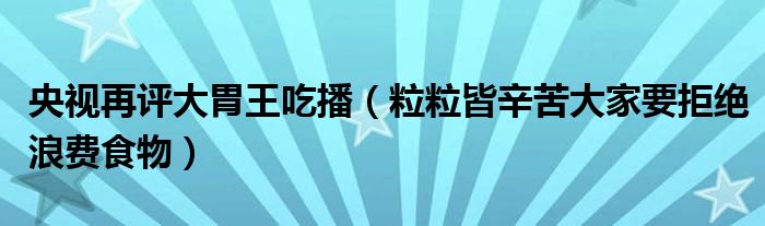 大家好,綜合小編來為大家講解下。央視再評大胃王吃播,粒粒皆辛苦大家要拒絕浪費食物很多人還不知道,現在讓我們一起來看看吧!