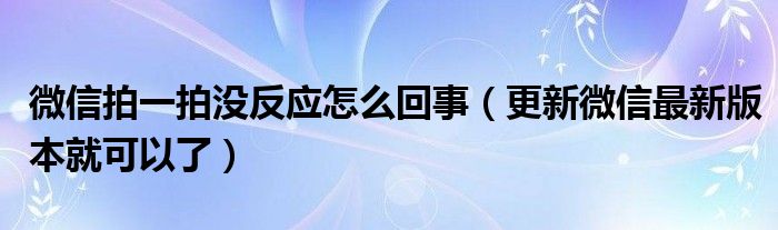 大家好,綜合小編來為大家講解下。微信拍一拍沒反應怎么回事,更新微信最新版本就可以了很多人還不知道,現在讓我們一起來看看吧!
