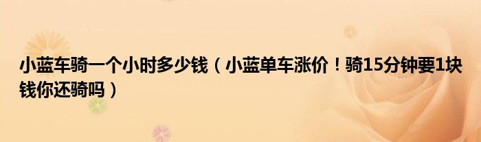 大家好,綜合小編來為大家講解下。小藍車騎一個小時多少錢,小藍單車漲價!騎15分鐘要1塊錢你還騎嗎很多人還不知道,現在讓我們一起來看看吧!