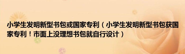 大家好,綜合小編來為大家講解下。小學(xué)生發(fā)明新型書包或國家專利,小學(xué)生發(fā)明新型書包獲國家專利!市面上沒理想書包就自行設(shè)計(jì)很多人還不知道,現(xiàn)在讓我們一起來看看吧!