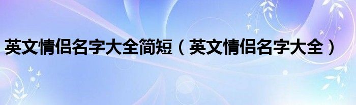 大家好,綜合小編來為大家講解下。英文情侶名字大全簡短,英文情侶名字大全很多人還不知道,現在讓我們一起來看看吧!