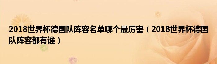 大家好,綜合小編來為大家講解下。2018世界杯德國隊陣容名單哪個最厲害,2018世界杯德國隊陣容都有誰很多人還不知道,現在讓我們一起來看看吧!