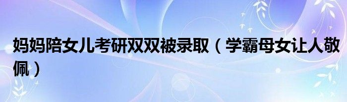 大家好,綜合小編來為大家講解下。媽媽陪女兒考研雙雙被錄取,學霸母女讓人敬佩很多人還不知道,現在讓我們一起來看看吧!
