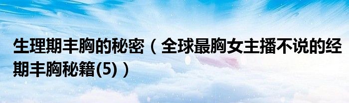 大家好,綜合小編來為大家講解下。生理期豐胸的秘密,全球最胸女主播不說的經(jīng)期豐胸秘籍(5)很多人還不知道,現(xiàn)在讓我們一起來看看吧!