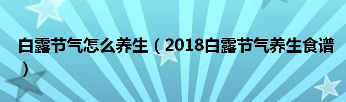 大家好,綜合小編來為大家講解下。白露節氣怎么養生,2018白露節氣養生食譜很多人還不知道,現在讓我們一起來看看吧!