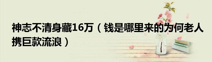 大家好,綜合小編來(lái)為大家講解下。神志不清身藏16萬(wàn),錢是哪里來(lái)的為何老人攜巨款流浪很多人還不知道,現(xiàn)在讓我們一起來(lái)看看吧!