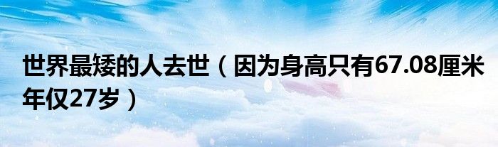 大家好,綜合小編來為大家講解下。世界最矮的人去世,因為身高只有67.08厘米年僅27歲很多人還不知道,現在讓我們一起來看看吧!