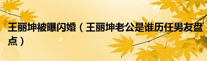 大家好,綜合小編來為大家講解下。王麗坤被曝閃婚,王麗坤老公是誰歷任男友盤點很多人還不知道,現在讓我們一起來看看吧!