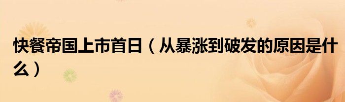 大家好,綜合小編來為大家講解下。快餐帝國上市首日,從暴漲到破發的原因是什么很多人還不知道,現在讓我們一起來看看吧!