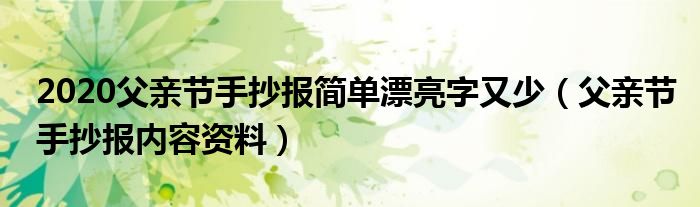 大家好,綜合小編來為大家講解下。2020父親節手抄報簡單漂亮字又少,父親節手抄報內容資料很多人還不知道,現在讓我們一起來看看吧!