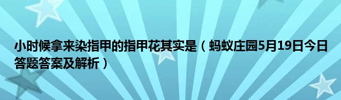 小時候拿來染指甲的“指甲花”,其實是?今天支付寶螞蟻莊園2020年5月19日莊園小課堂的答案是什么呢?螞蟻莊園莊園小課堂2020年5月19日的問題是:小時候拿來染指甲的指甲花其實是。下面小編就為大家帶來了答案,不清楚的朋友快來看看吧。
