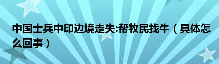 大家好,綜合小編來為大家講解下。中國士兵中印邊境走失:幫牧民找牛,具體怎么回事很多人還不知道,現在讓我們一起來看看吧!