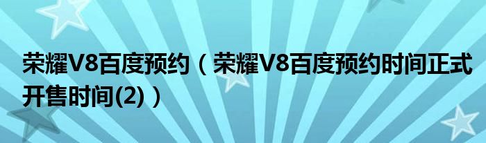 大家好,綜合小編來為大家講解下。榮耀V8百度預約,榮耀V8百度預約時間正式開售時間(2)很多人還不知道,現在讓我們一起來看看吧!