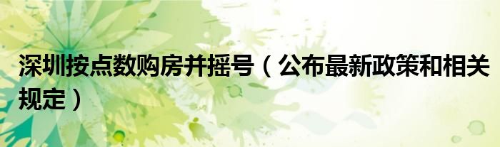 大家好,綜合小編來為大家講解下。深圳按點數(shù)購房并搖號,公布最新政策和相關(guān)規(guī)定很多人還不知道,現(xiàn)在讓我們一起來看看吧!