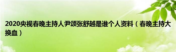 大家好,綜合小編來為大家講解下。2020央視春晚主持人尹頌張舒越是誰個人資料,春晚主持大換血很多人還不知道,現(xiàn)在讓我們一起來看看吧!