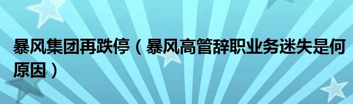大家好,綜合小編來為大家講解下。暴風集團再跌停,暴風高管辭職業務迷失是何原因很多人還不知道,現在讓我們一起來看看吧!