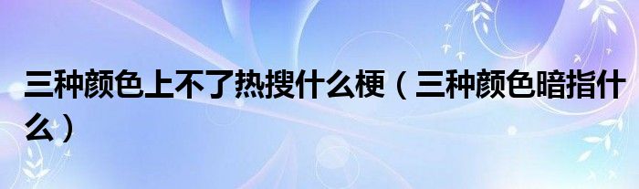 大家好,綜合小編來為大家講解下。三種顏色上不了熱搜什么梗,三種顏色暗指什么很多人還不知道,現(xiàn)在讓我們一起來看看吧!