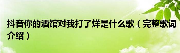 大家好,綜合小編來為大家講解下。抖音你的酒館對(duì)我打了烊是什么歌,完整歌詞介紹很多人還不知道,現(xiàn)在讓我們一起來看看吧!