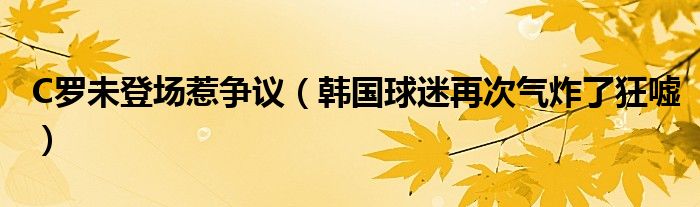 大家好,綜合小編來為大家講解下。C羅未登場(chǎng)惹爭(zhēng)議,韓國(guó)球迷再次氣炸了狂噓很多人還不知道,現(xiàn)在讓我們一起來看看吧!