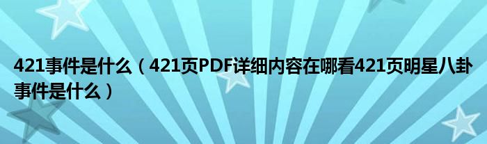 日前,421頁娛樂圈明星八卦在網(wǎng)上瘋傳,421是什么梗呢?421頁的PDF中都有哪些內(nèi)容?421頁pdf在哪里可以看呢,真實性有多少?