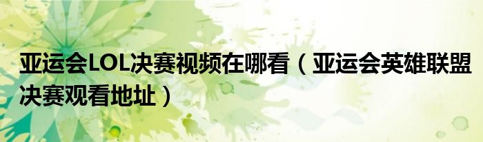 亞運(yùn)會(huì)LOL決賽視頻在哪看 亞運(yùn)會(huì)英雄聯(lián)盟決賽觀看地址