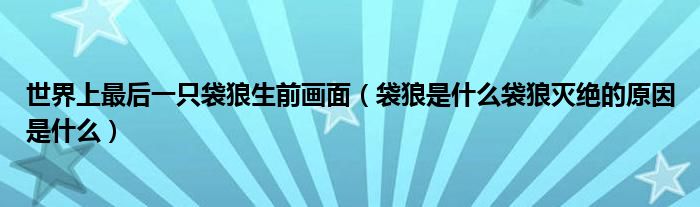 大家好,綜合小編來為大家講解下。世界上最后一只袋狼生前畫面,袋狼是什么袋狼滅絕的原因是什么很多人還不知道,現在讓我們一起來看看吧!