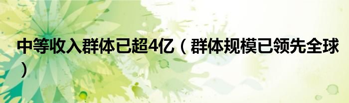 大家好,綜合小編來為大家講解下。中等收入群體已超4億,群體規模已領先全球很多人還不知道,現在讓我們一起來看看吧!