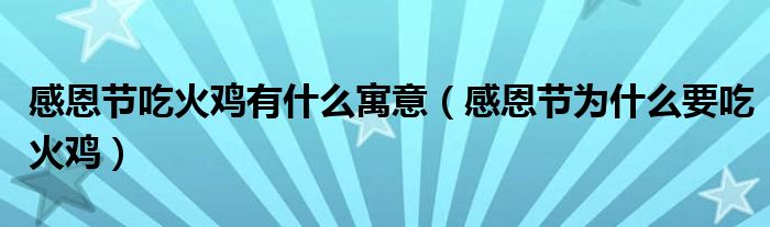 感恩節吃火雞有哪些寓意?感恩節是西方非常重大的節日,在這一天人們都會回到家里與家人團聚共享美食,其中必不可少的就是火雞了,那么你知道感恩節吃火雞有什么寓意呢?下面我們就來看看吧