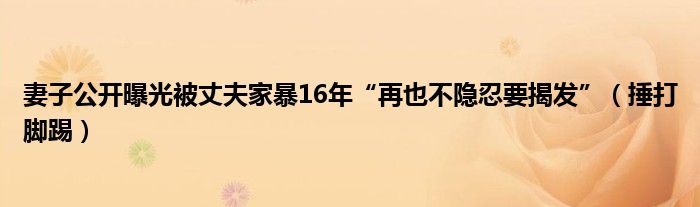 大家好,綜合小編來為大家講解下。妻子公開曝光被丈夫家暴16年“再也不隱忍要揭發(fā)”,捶打腳踢很多人還不知道,現(xiàn)在讓我們一起來看看吧!
