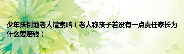 大家好,綜合小編來為大家講解下。少年扶倒地老人遭索賠,老人稱孩子若沒有一點責任家長為什么要賠錢很多人還不知道,現在讓我們一起來看看吧!