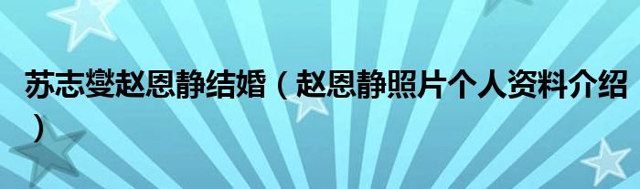 大家好,綜合小編來為大家講解下。蘇志燮趙恩靜結婚,趙恩靜照片個人資料介紹很多人還不知道,現在讓我們一起來看看吧!
