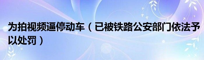 大家好,綜合小編來為大家講解下。為拍視頻逼停動車,已被鐵路公安部門依法予以處罰很多人還不知道,現在讓我們一起來看看吧!